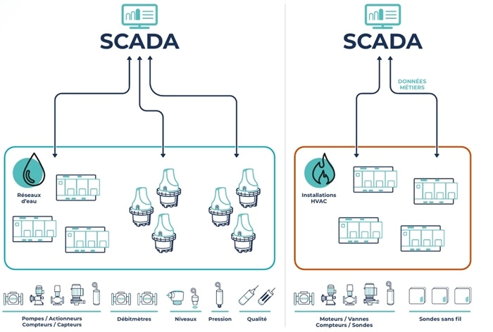 Les architectures historiques de télégestion et de GTB reposent sur des modèles éprouvés, construits autour d’une logique pyramidale associant capteurs, automates et supervision SCADA. Ces infrastructures ont été conçues pour fonctionner de manière autonome, avec un haut niveau de robustesse.