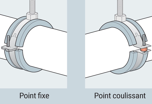 Ces colliers se répartissent en points fixes et points coulissants, lesquels permettent le mouvement axial du tube.