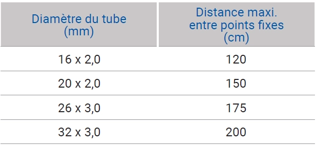Distance maxi entre points fixes - Tubes multicouche turatec et alpex_L