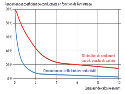 - est TRES isolant : 1 mm de tartre (coquille d’œuf) = 10% d’énergie supplémentaire pour transmettre la même quantité de chaleur à l’eau !